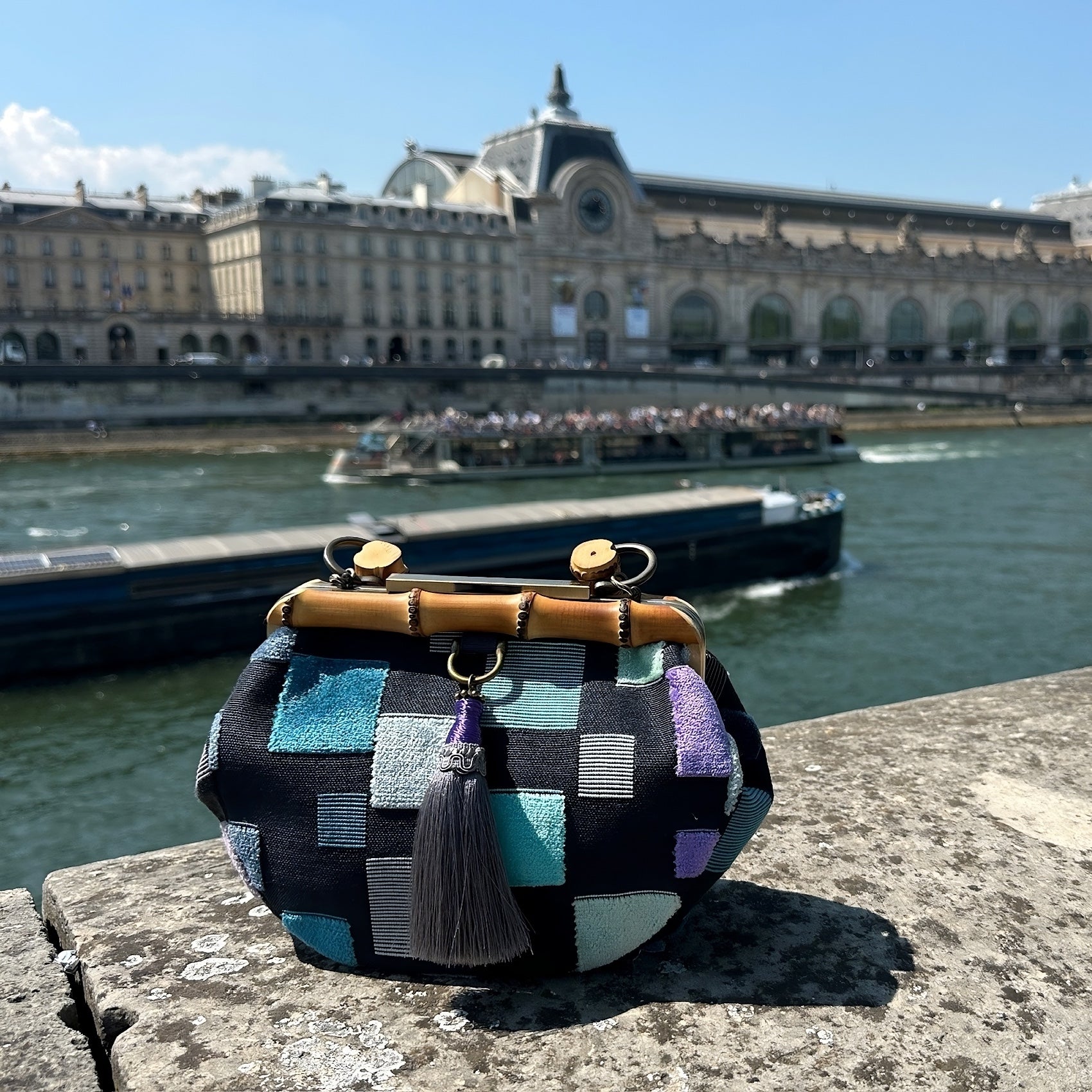 Nous mêlons la noblesse des tissus français à l’artisanat raffiné de Kyoto. Chaque sac est une rencontre entre deux cultures d’exception.
