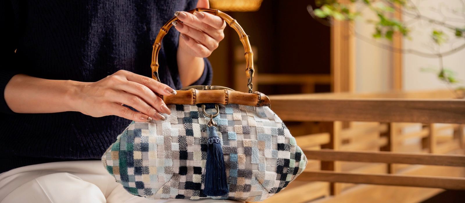 Nos sacs sont réalisés avec des matériaux sélectionnés à Kyoto : bambou, tissu, et savoir-faire ancestral. Chaque collection repose sur un seul design, mais chaque tissu donne vie à une pièce unique, conçue une seule fois.