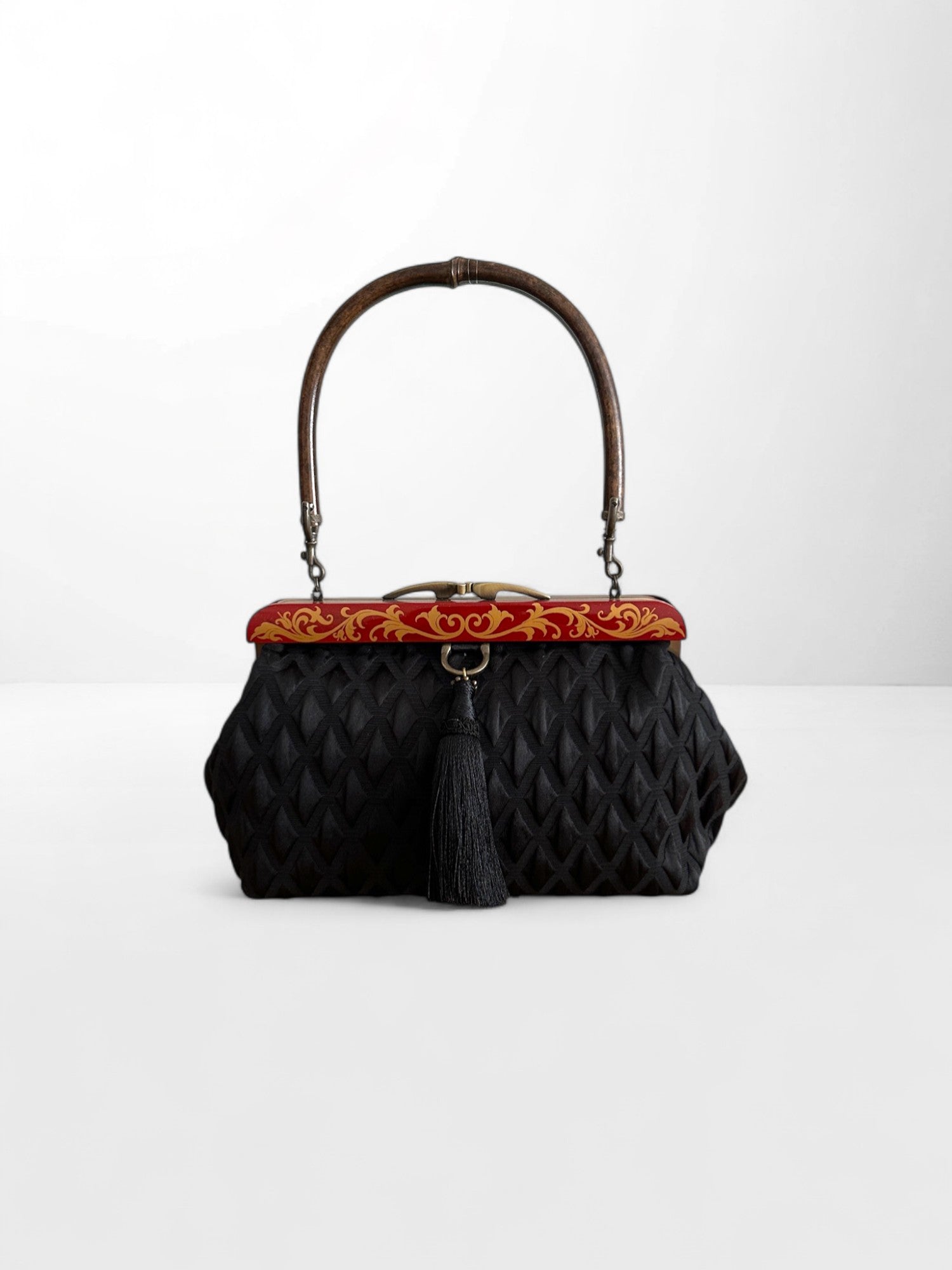 Le fermoir est orné de laque japonaise, appliquée à la main par un artisan traditionnel.